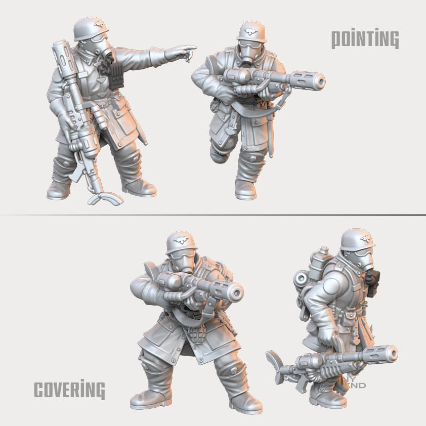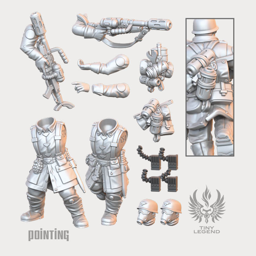 The kit contains 2 multipart infantry models with fusion rifles and 2 backpacks with related stuff, 2 x 25 mm bases. Don't forget about spare heads and bases, if you need some.