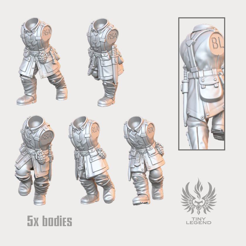 The kit contains 5 multipart infantry models, 6 field rig pieces, spare heads, arms and hands, 5 x 25 mm bases.